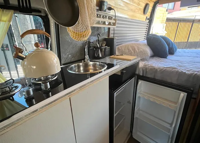 Coffee/tea making equipment are available in Campervan Totalmente Equipada - Casarodante - Motorhome villa for self-catering. The kitchen also offers a refrigerator and kitchenware. Guests can enjoy dinner at Paula panaderia y pasteleria, located just 550 metres away. Aerodromo Concon airport is located a 15-minute drive from the campsite.